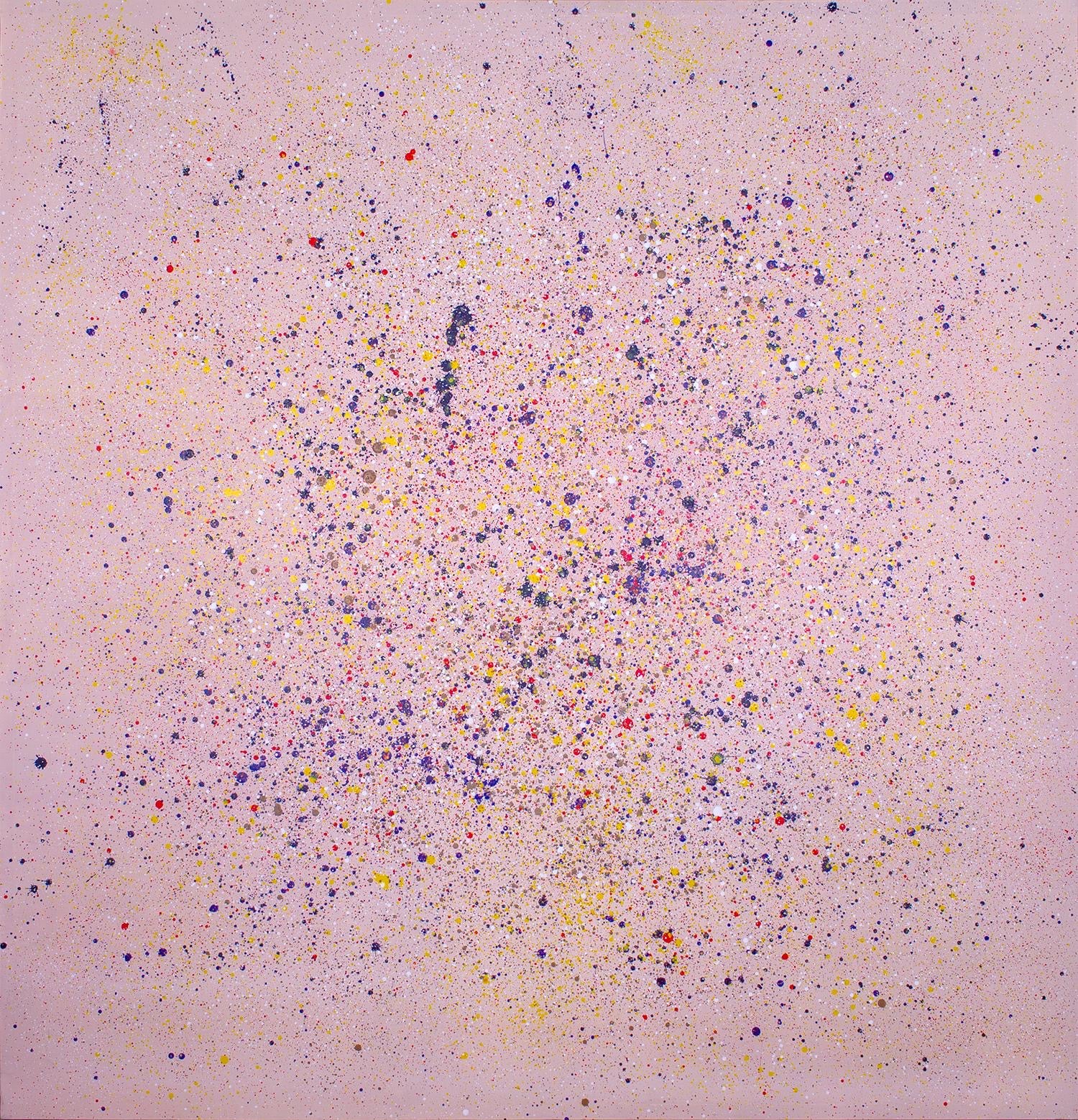 Description: Pink Worlds is a soft, gentle composition with a pale pink background that radiates calm and serenity. Tiny, delicate specks of yellow, blue, and red are scattered lightly across the surface, adding a hint of playfulness and light energy. These subtle dashes of color, so faint yet deliberate, feel like whispers of thought or emotion, quietly dancing across the canvas without overwhelming the viewer. The overall effect is one of peacefulness, inviting contemplation and reflection. The soft colors and minimalistic composition create a dreamlike quality, as if the piece is capturing a fleeting moment or a quiet breath, offering a sense of stillness in the midst of the chaotic world.